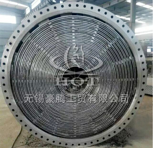 如上圖就是用于廢氣冷卻的單面可拆式不銹鋼螺旋板換熱器的實(shí)拍圖片。同樣的,如介質(zhì)雜質(zhì)較多的液體也同樣適用。